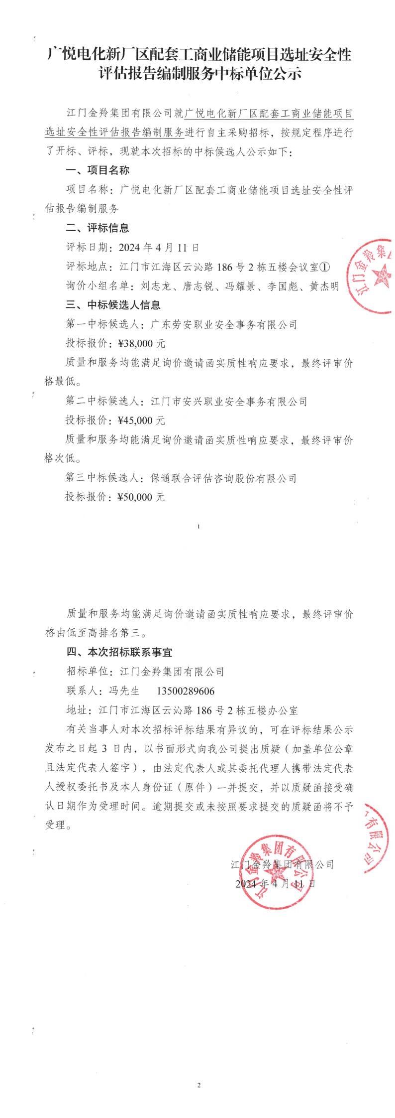 广悦电化新厂区配套工商业储能项目选址安全性评估报告编制服务中标单位公示