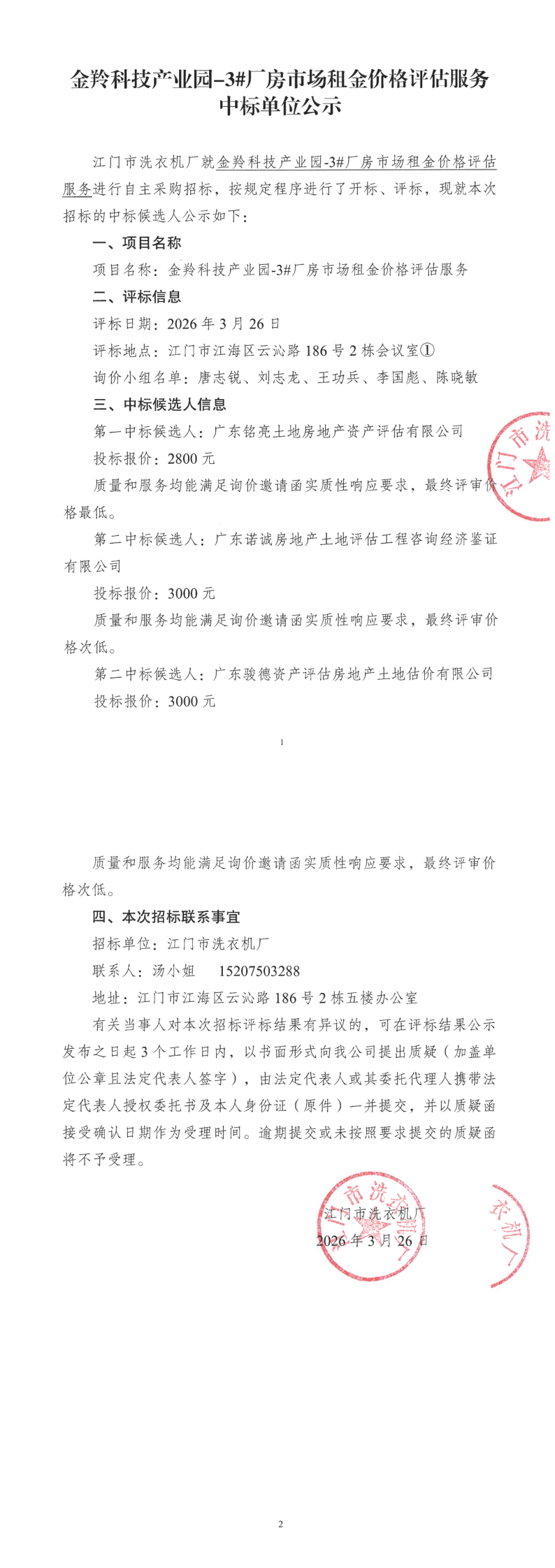 金羚科技产业园-3#厂房市场租金价格评估服务中标单位公示